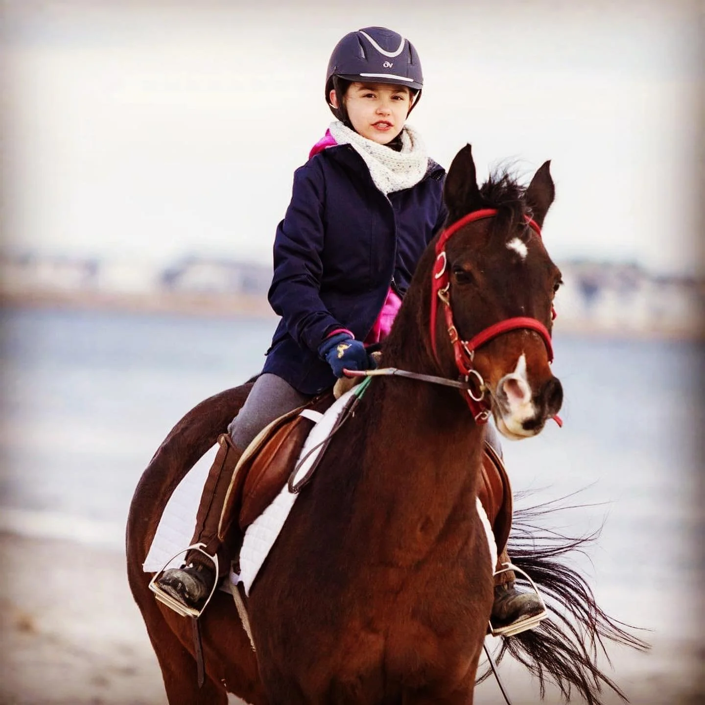 Gracie is an elegant and athletic, 15.3 hand, bay, Thoroughbred mare. She is forward and sensitive to the aids. She goes on the trail and loves jumping. Suitable for a quiet rider. Not a beginner’s horse.